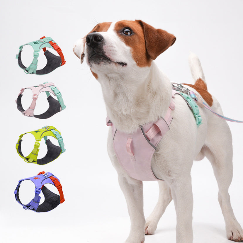 此款牽引胸背主打輕量透氣、科學貼合,並提供多色多尺碼選擇,適合注重狗狗舒適與安全的寵物主人。