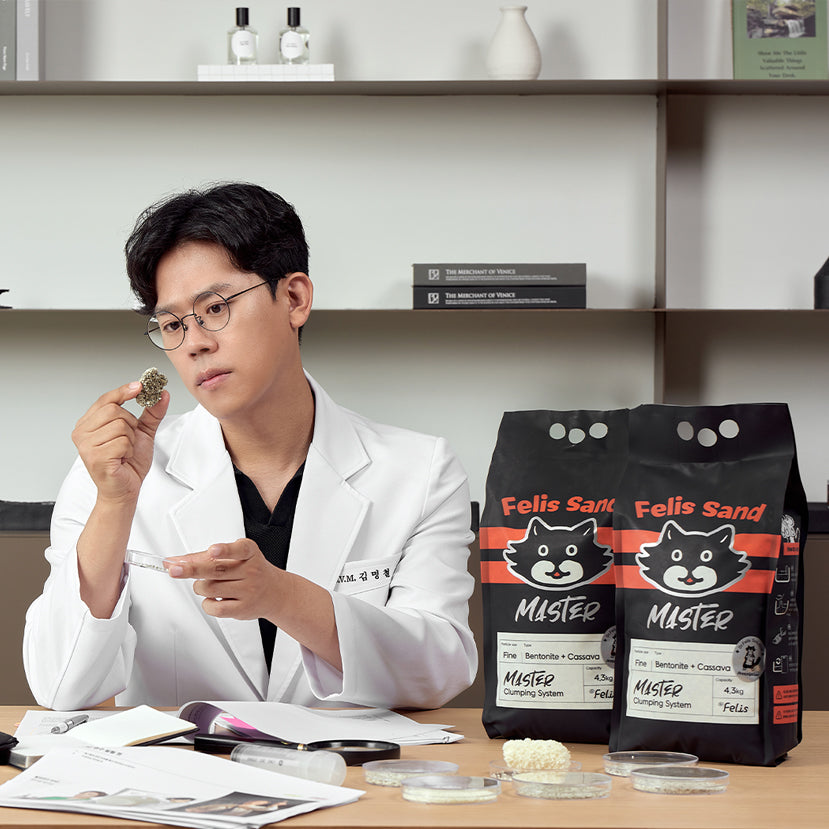 賣點:1、微塵含量低於0.01。2、韓國貓科動物動物獸醫協會(KSFM)官網認證。3、細顆粒(木薯+膨潤土)。4、處方級優質貓砂。5、自檢等級A+。