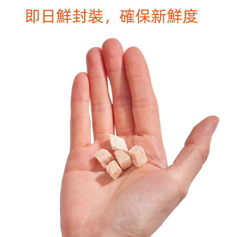 賣點:1、貓科動物的最佳咬合尺寸,為貓咪量身定做的小食。2、採用100%原材料及在零下40°快速冷卻的凍乾技術,無任何添加劑。