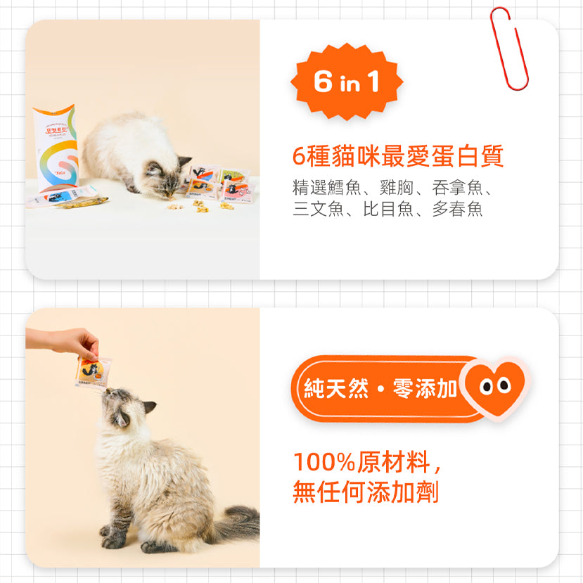 賣點:1、貓科動物的最佳咬合尺寸,為貓咪量身定做的小食。2、採用100%原材料及在零下40°快速冷卻的凍乾技術,無任何添加劑。