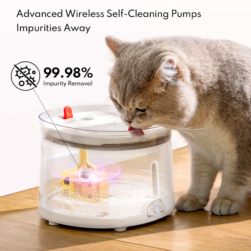 簡介:CF20採用無線磁感應供電技術,安全好清潔;在保留水電分離的基礎上,加載了深紫外線殺菌技術,覆蓋率極強,高效攔截水質中大腸桿菌、傳染性肝炎、結核桿菌等一切有害微生物2mins 除菌/次,無污染殘留,每一滴都是幹凈水。外觀上採用內外桶分離的設計,並搭載有防幹燒系統、異物識別保護系統、濾芯更換提醒等智能功能模擬新鮮的潺潺流水,讓寵物愛上喝水,主人更放心。