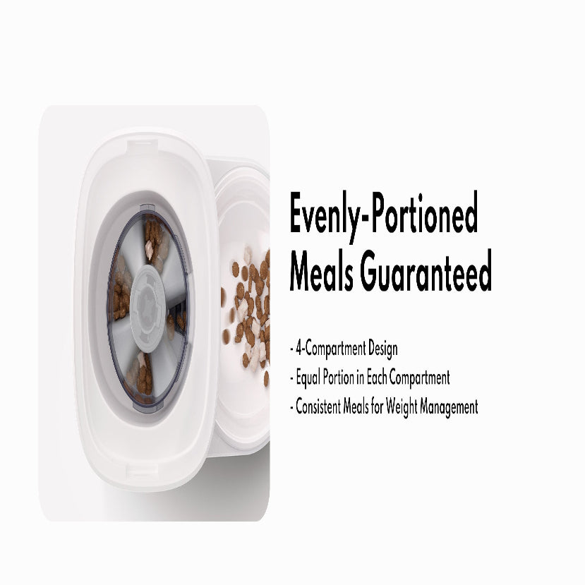a.創新四分格,均勻分配不卡糧。將糧食等量劃分,可APP設走一次多份,規範愛寵約飲食習慣。